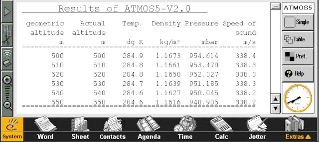 Atmos is just a small tool I am using as part of my professional activities as an aeronautical engineer. It computes the properties of the standard atmosphere.